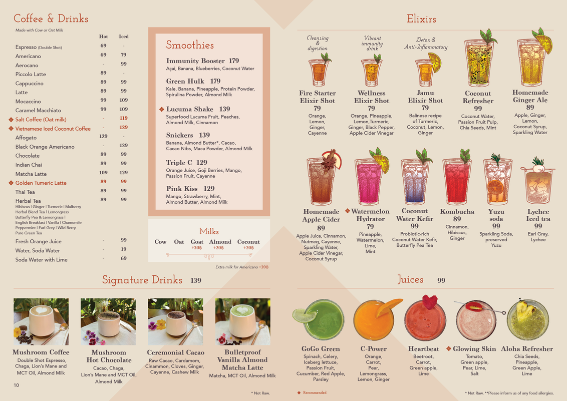 Nuts and seeds feature in many dishes—please inform us about any allergies.